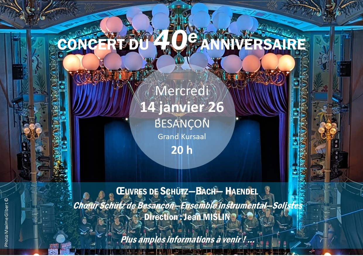 14 janvier 2026 à 20h00 - 22h00 Concert du 40e anniversaire BESANÇON Grand Kursaal 2 place du théatre, BESANÇON, France Plus d'informations à venir !